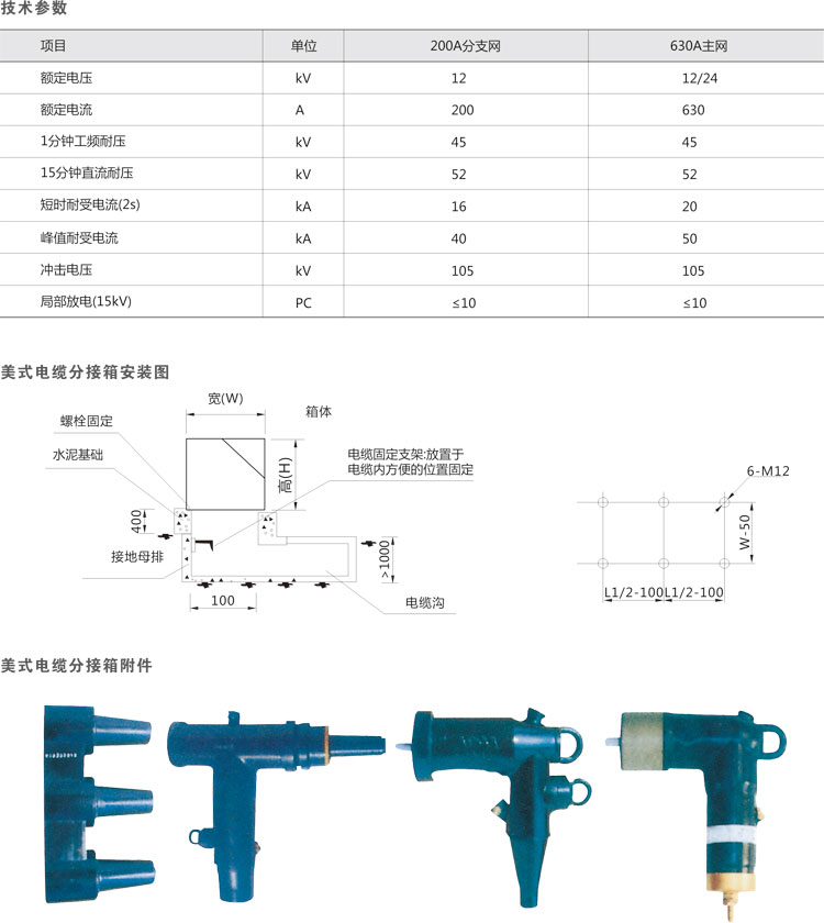 美式電纜分支箱是一種廣泛應(yīng)用于北美地區(qū)電力配網(wǎng)系統(tǒng)中的輸配電工程設(shè)備.它以單向開門、橫向多通母排為主要特點(diǎn),具有寬度小、組合靈活、全絕緣、全密封等顯著優(yōu)點(diǎn)。按照額定電流一般可以分為630A主回路和200A分支回路兩種。630A主回路采用旋入式螺栓固定連接;200A分支回路采用插拔式連接,且可以帶負(fù)荷拔插。美式電纜分支箱所采用的電纜接頭符合IFFF386標(biāo)準(zhǔn)。廣泛適用于:城市電網(wǎng)改造、住宅小區(qū)、商業(yè)中心等城市人口密集地區(qū)。