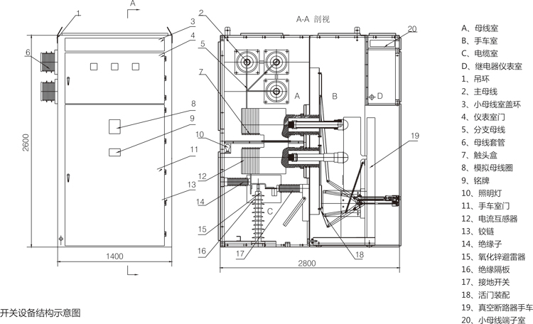 本開關(guān)設(shè)備具有電纜進(jìn)出線、架空進(jìn)出線、母線聯(lián)絡(luò)、隔離、電壓互感器、避雷器等主電路方案。母線采用復(fù)合絕緣,相間及連接頭配有用阻燃材料注塑而成的絕緣套,主母線相鄰柜間用母線套管隔開,能有效地防止事故蔓延,同時(shí)對主母線起到輔助支撐作用。電纜室裝有接地開關(guān)、過電壓保護(hù)裝置等。