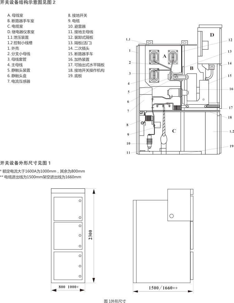 案,經(jīng)排列、組合后能成為各種方案形式的配電裝置。本開關(guān)設備可以從正面進行安裝調(diào)試和維護,因此它可以背靠背組成雙重排列和靠墻安裝,提高開關(guān)設備的安全性、靈活性,減少了占地面積。