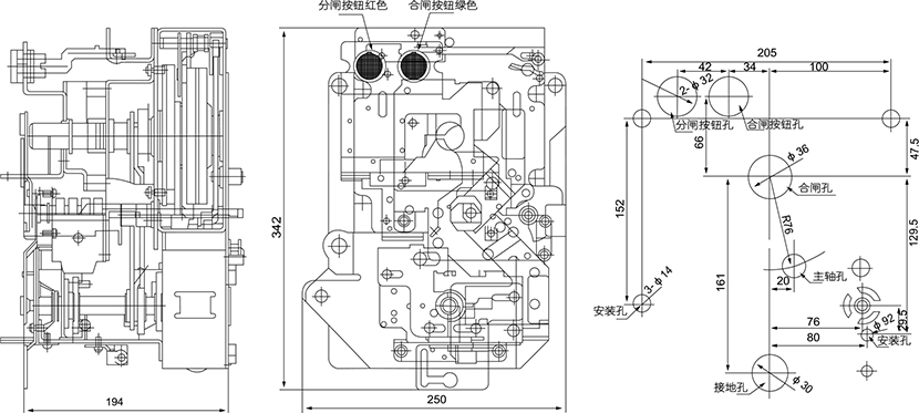 三、彈簧扣動(dòng)機(jī)構(gòu)外形及安裝尺寸